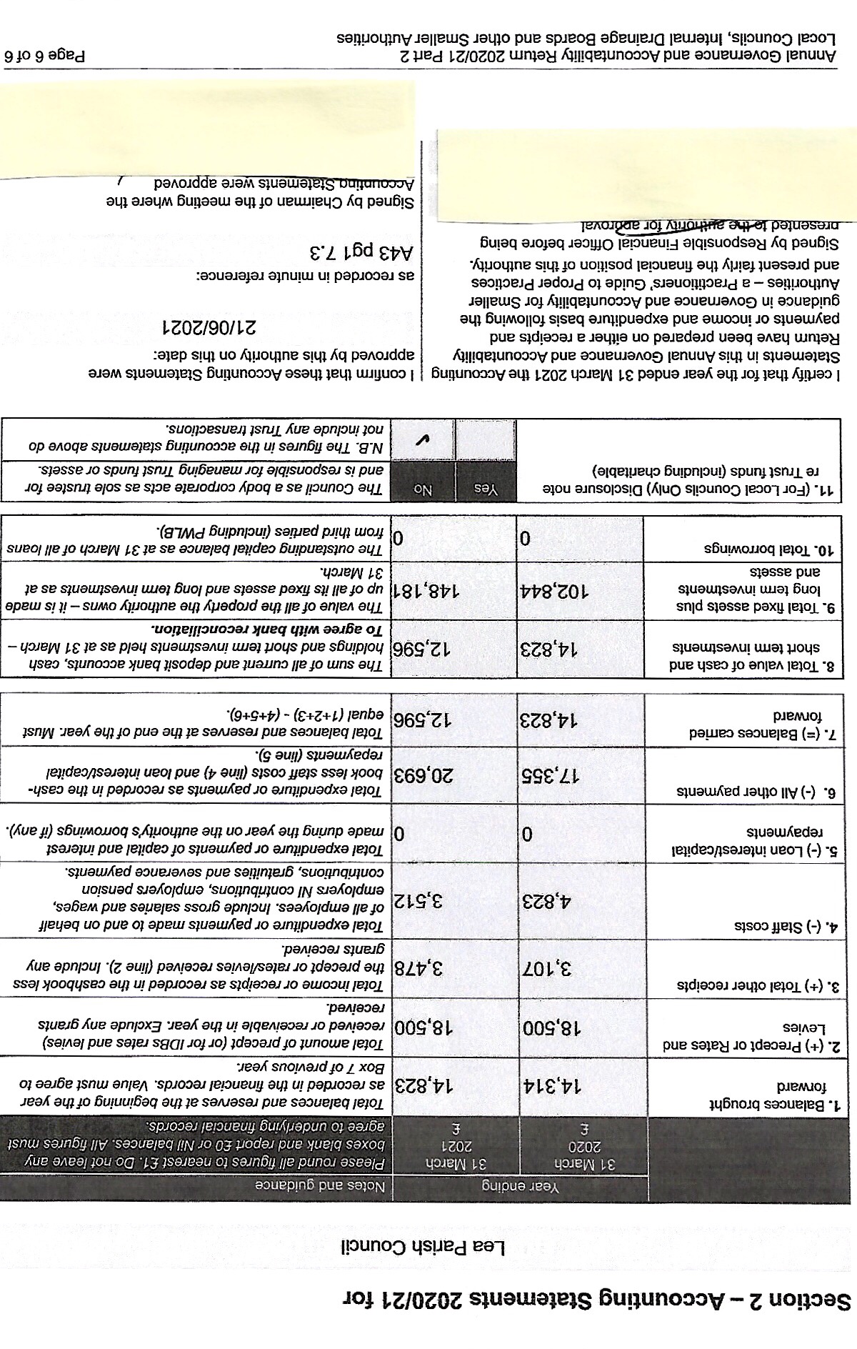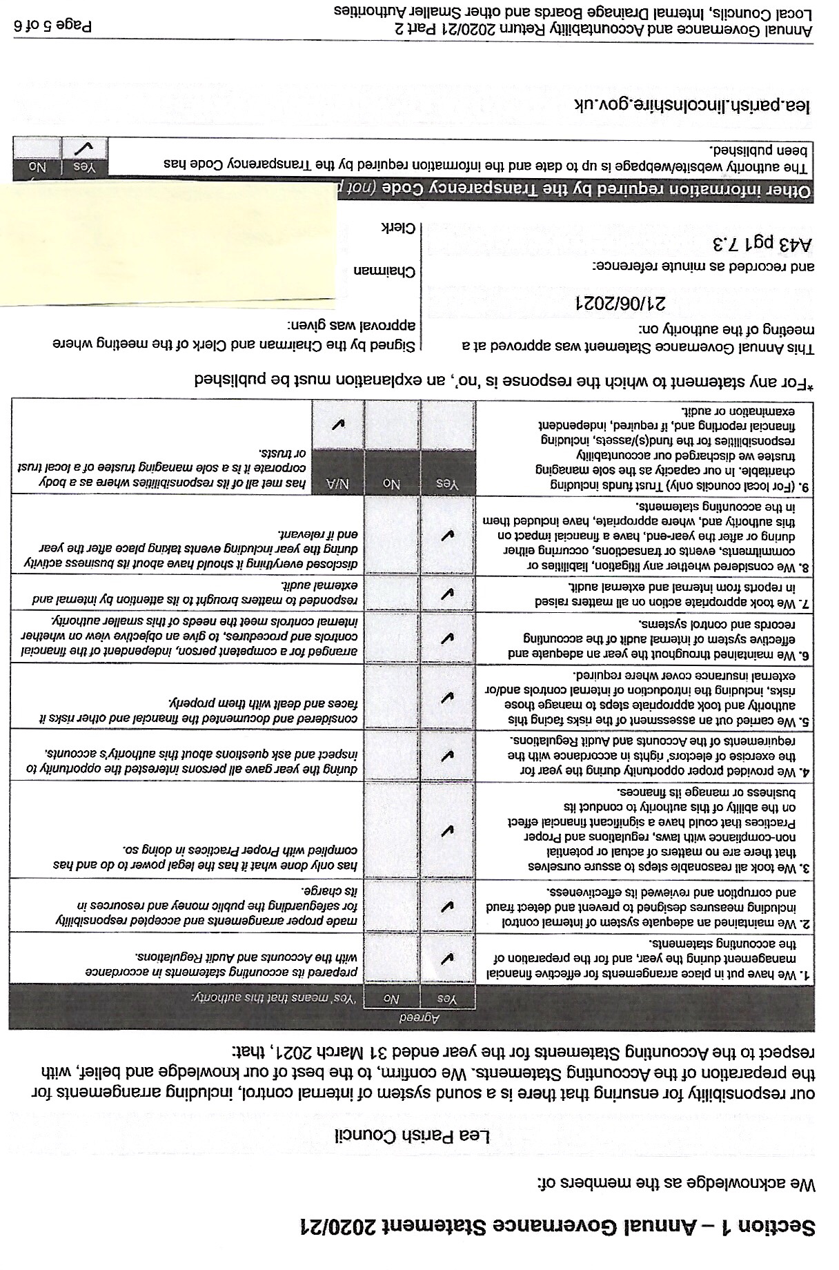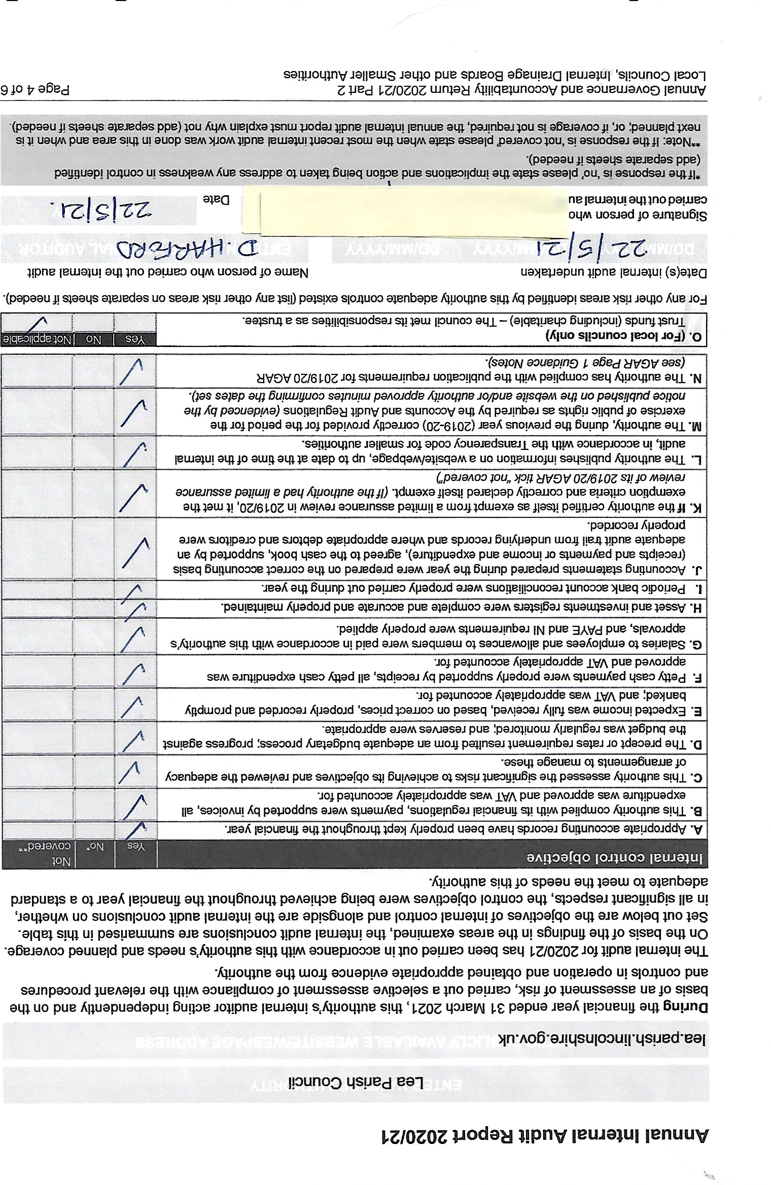 Annual Governance Audit Report for Lea Parish Council 2020 to 2021